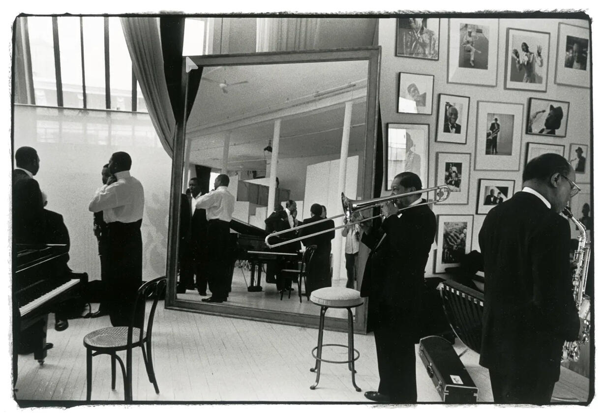 This is in a professional photographer's studio, as the Wynton Marsalis Septet and musicians from Duke Ellingtons group were morphing into the Jazz at Lincoln Center Orchestra. Waiting around for the shoot to take place, I recognized the dramatic power of the composition, intending it as a wink at the cover of a 1961 album by composer and jazz saxophonist Oliver Nelson, The Blues and the Abstract Truth.